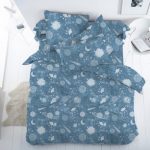 Постельное белье детское Поплин Ушастики голубые Полутороспальное