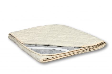 наматрасник на резинке с наполнителем из овечьей шерсти 200 г/кв.м, чехол — ткань Микрофибра/спанбонд (100% — полиэстер) , окантовка бейка, бирка, постер, в сумке