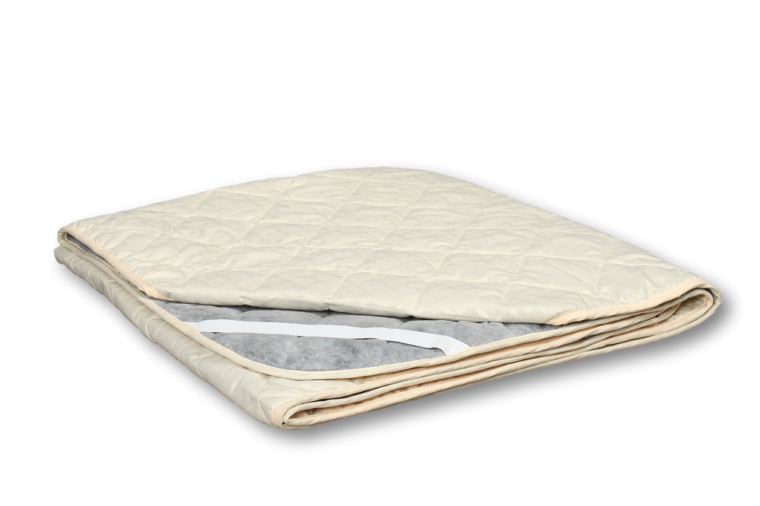 наматрасник на резинке с наполнителем из овечьей шерсти 200 г/кв.м, чехол — ткань Микрофибра/спанбонд (100% — полиэстер) , окантовка бейка, бирка, постер, в сумке
