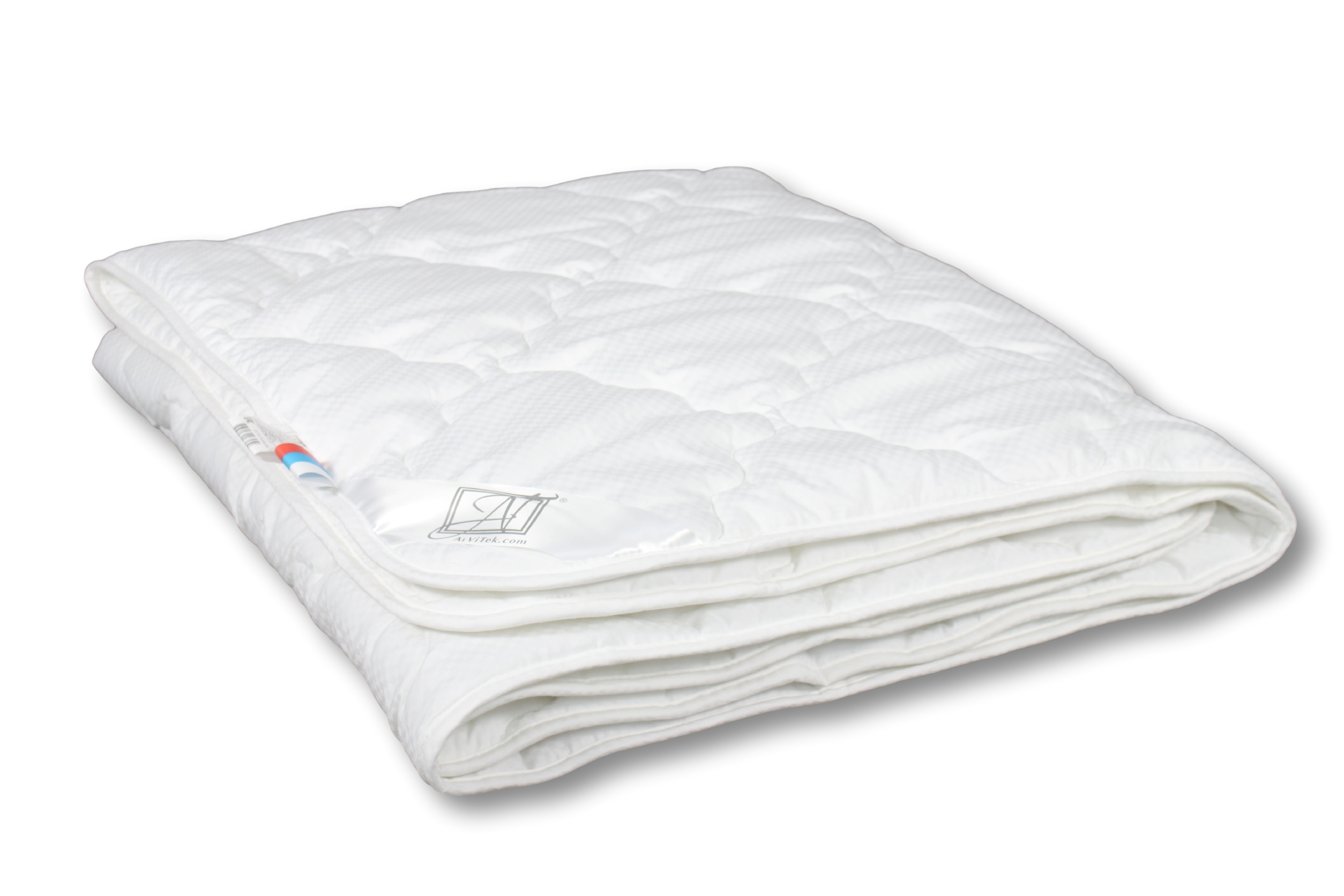 одеяло Адажио с наполнителем Искуственный Лебяжий пух (полое полиэфирное волокно высокой силиконизации 200 г./кв.м), чехол (100% хлопок) — сатин-жаккард белый, окантовка- косая бейка, уголок, бирка, флажок, постер, в чемодане