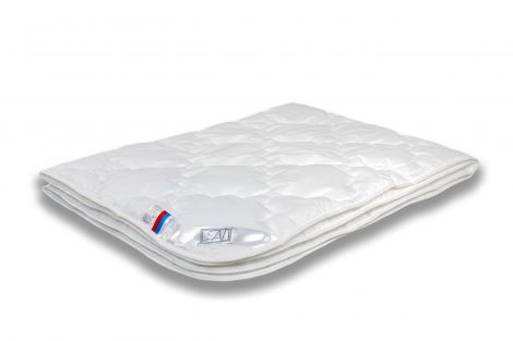 одеяло с наполнителем — Лебяжий пух (сверхтонкое полое извитое высокосиликонизированное микроволокно)-200 г/кв.м, чехол (хлопок 100%)- ткань тик белый, косая бейка, уголок, бирка, флажок, постер, в чемодане