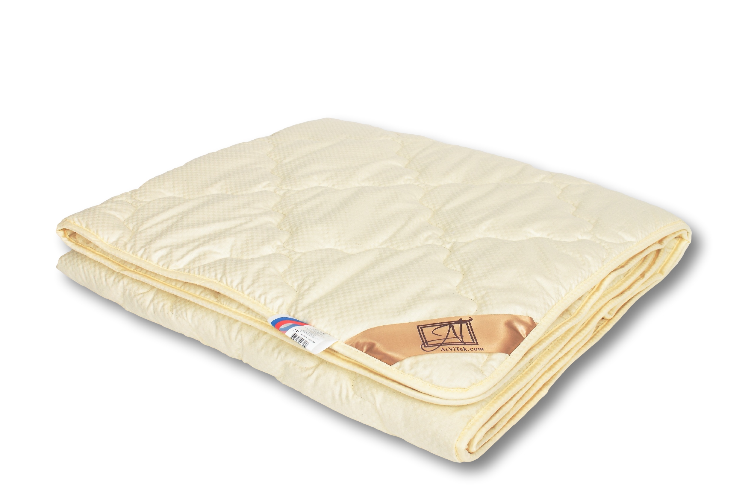 одеяло с наполнителем из овечьей шерсти меринос 200 г/кв.м, чехол (хлопок 100%)- ткань сатин-жаккард бежевый , окантовка — косая бейка, уголок, бирка, флажок, постер, в чемодане