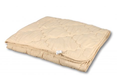 одеяло с наполнителем из верблюжьей шерсти 200 г/кв.м, чехол — микрофибра, окантовка-косая бейка, бирка, постер, в чемодане