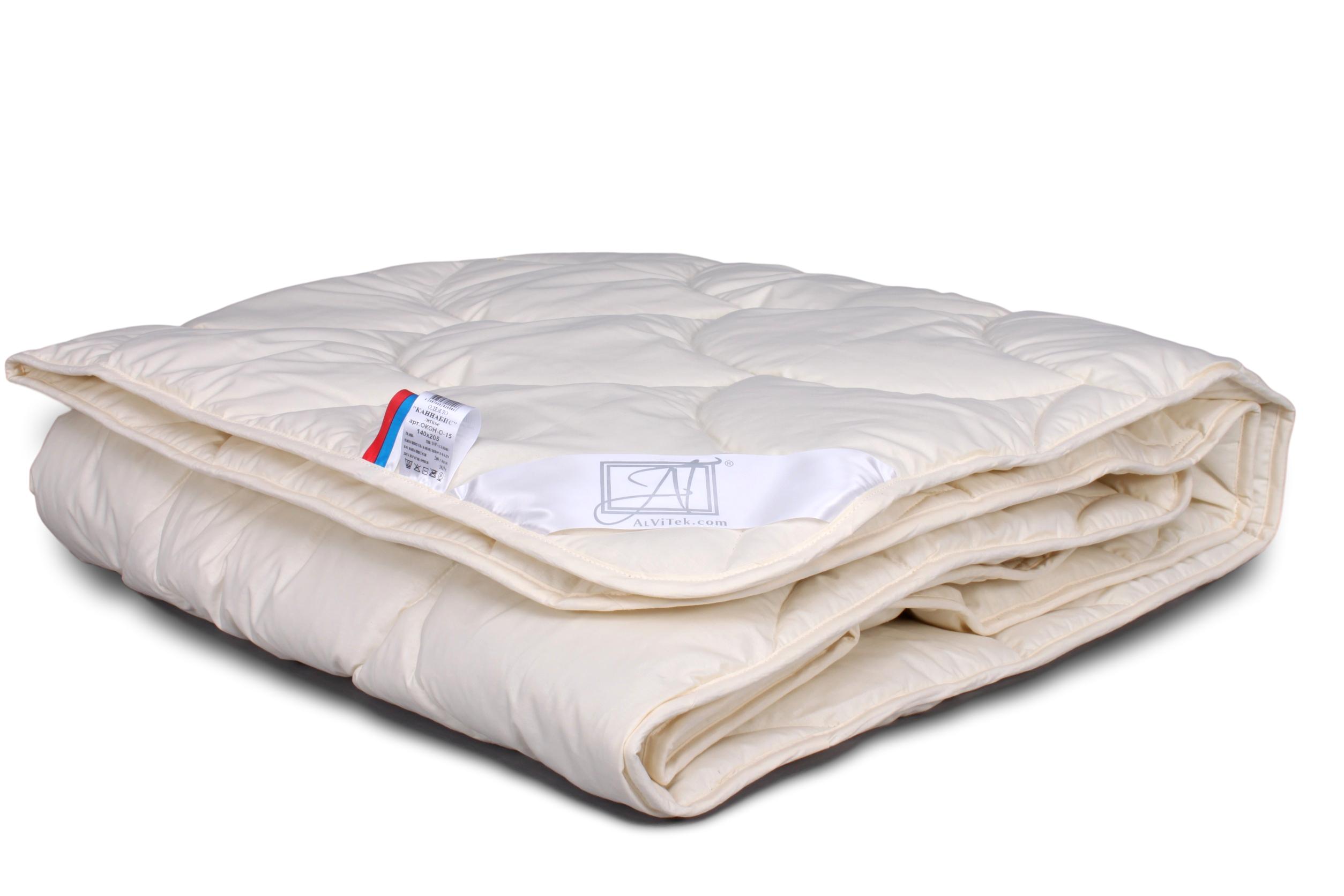 одеяло с наполнителем из конопляного волокна 200 г/кв.м, чехол (хлопок 100%)- ткань тик (цвет бежевый) , косая бейка, уголок, бирка, флажок, постер, в сумке