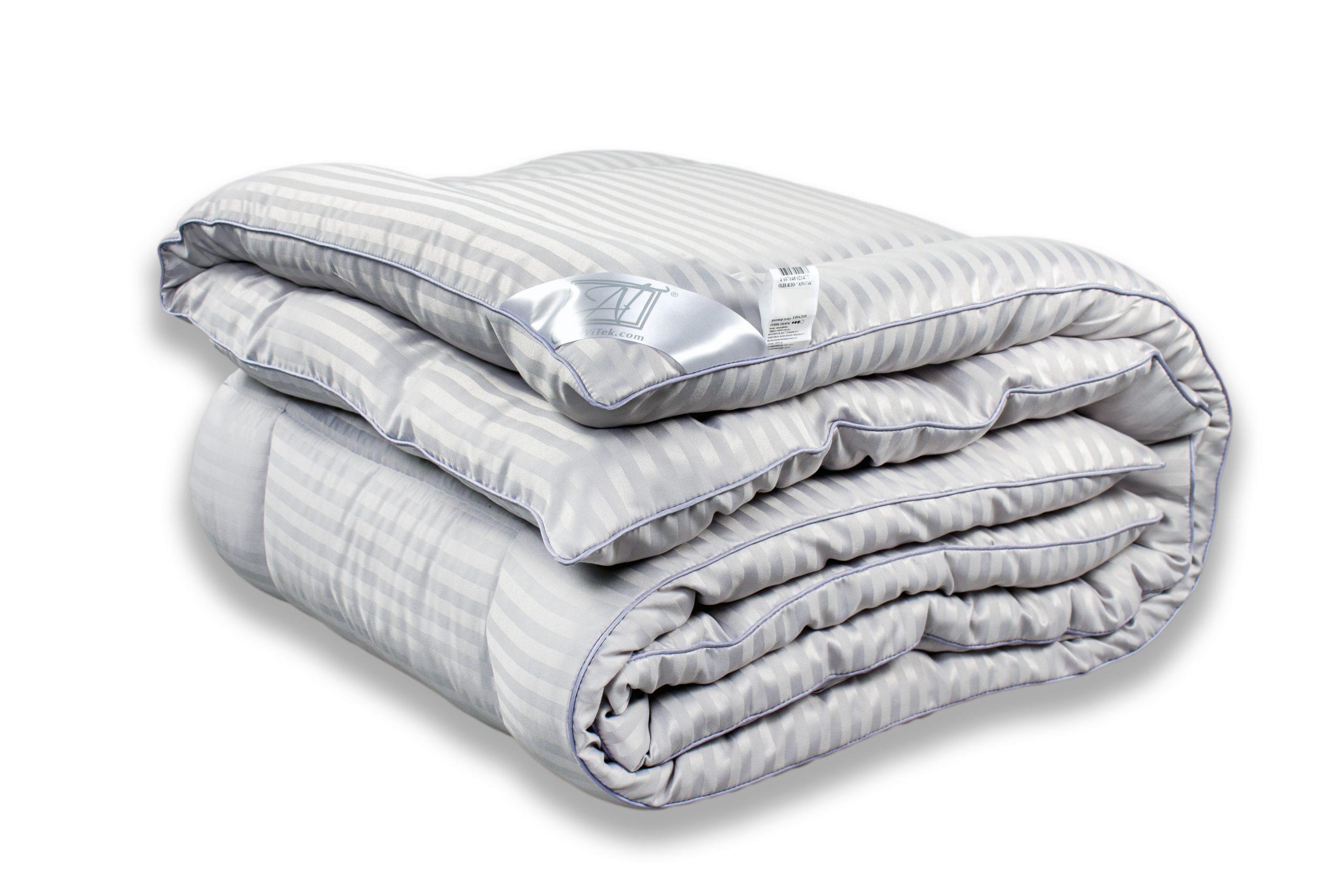 одеяло с наполнителем Холфит-пласт (полое полиэфирное волокно высокой силиконизации 300 г./кв.м), чехол — микрофибра Софт-Страйп с Вискозой , кант атласный, бирка, постер, в чемодане