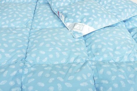 одеяло с наполнителем из 100% гусиного пуха (категории Экстра, 0,85кг), чехол касетный — ткань пуходержащий тик(хлопок 100%), кант, бирка, флажок, постер, в чемодане