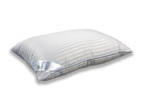 подушка: чехол с молнией ткань 100% п/э — микрофибра Софт-Страйп с Вискозой, наполнитель Лебяжий пух (0,8 кг высокосиликонизированное микроволокно), кант атласный, уголок, флажок, бирка, постер в сумке