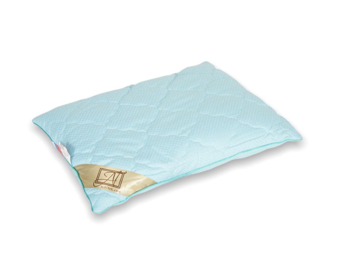 подушка: верхний чехол стеганный с молнией (наполнитель Морские водоросли 150 г/кв.м, ткань 100% хлопок — сатин или перкаль); внутренний чехол с молнией, хлопок 100% тик пуходержащий; наполнитель очищенная, обеспыленная гречневая лузга 2кг, кант атласный, уголок, флажок, бирка, чемодан