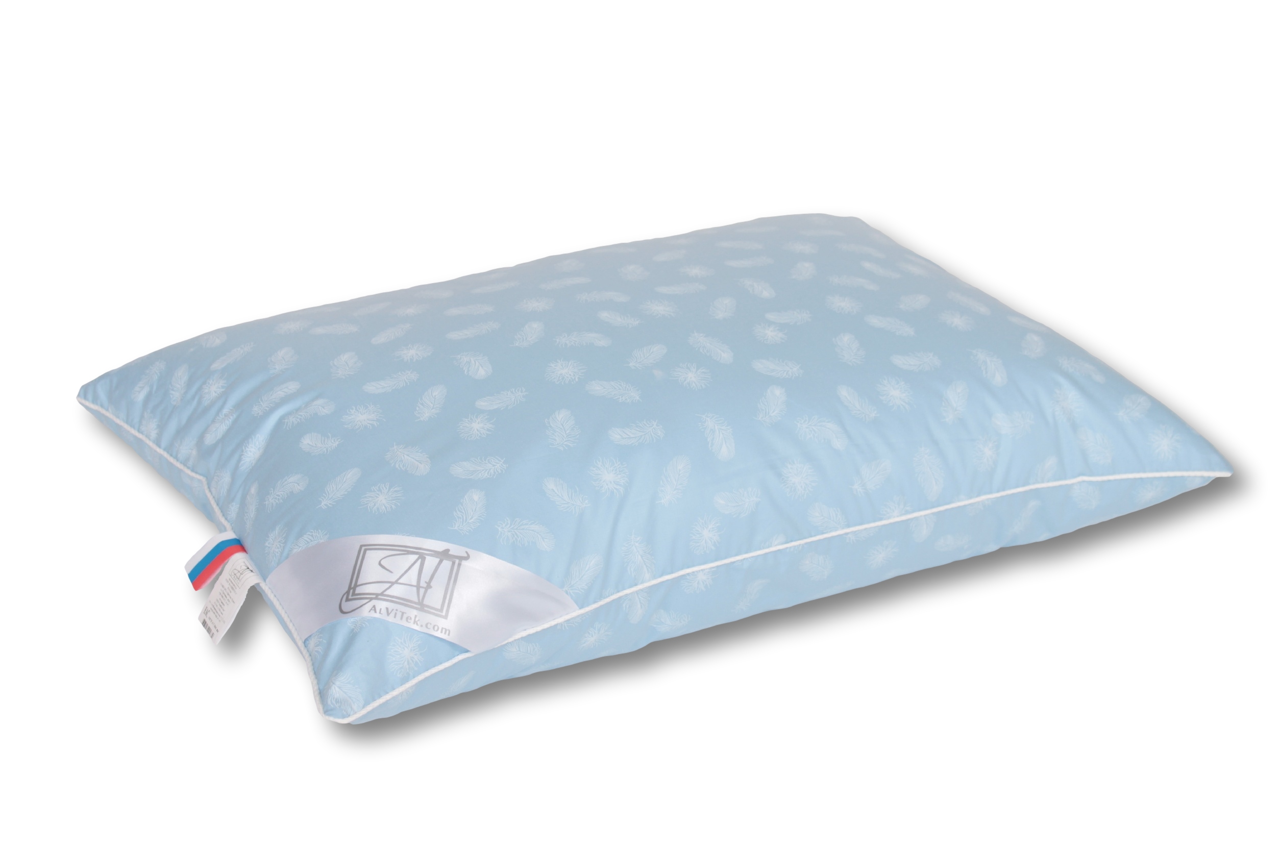 подушка чехол с молнией, ткань 100% хлопок- тик пуходержащий, наполнитель Лебяжий пух ( 1кг полое извитое высокосиликонизированное микроволокно), кант, уголок, бирка, фложок, постер, в сумке