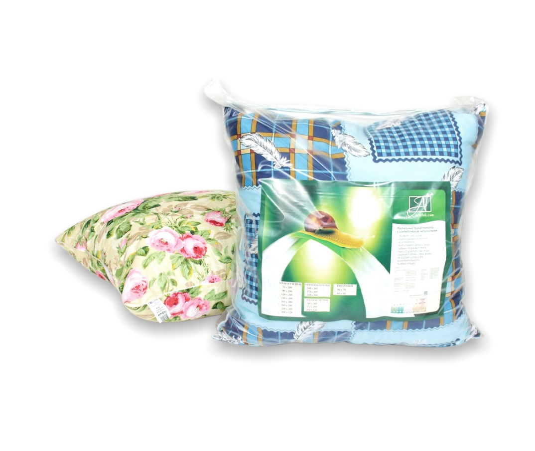 подушка: чехол с молнией ткань смесовая (поликоттон; 50% — хлопок/50% — полиэстер; 120 г/кв.м), наполнитель 0,48кг Холфит-шарики (полое извитое силиконизированное волокно), кант, бирка, в пакете