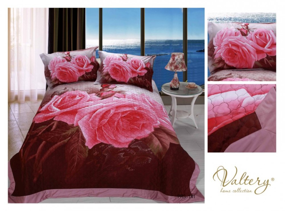 Покрывала сатиновые 3D PRS-141 Размер Евро (220х240) 2 наволочки (50х70) Розовый 100% хлопок