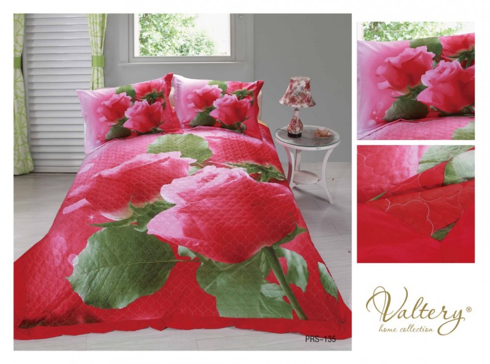 Покрывала сатиновые 3D PRS-135 Размер Евро (220х240) 2 наволочки (50х70) Малиновый 100% хлопок