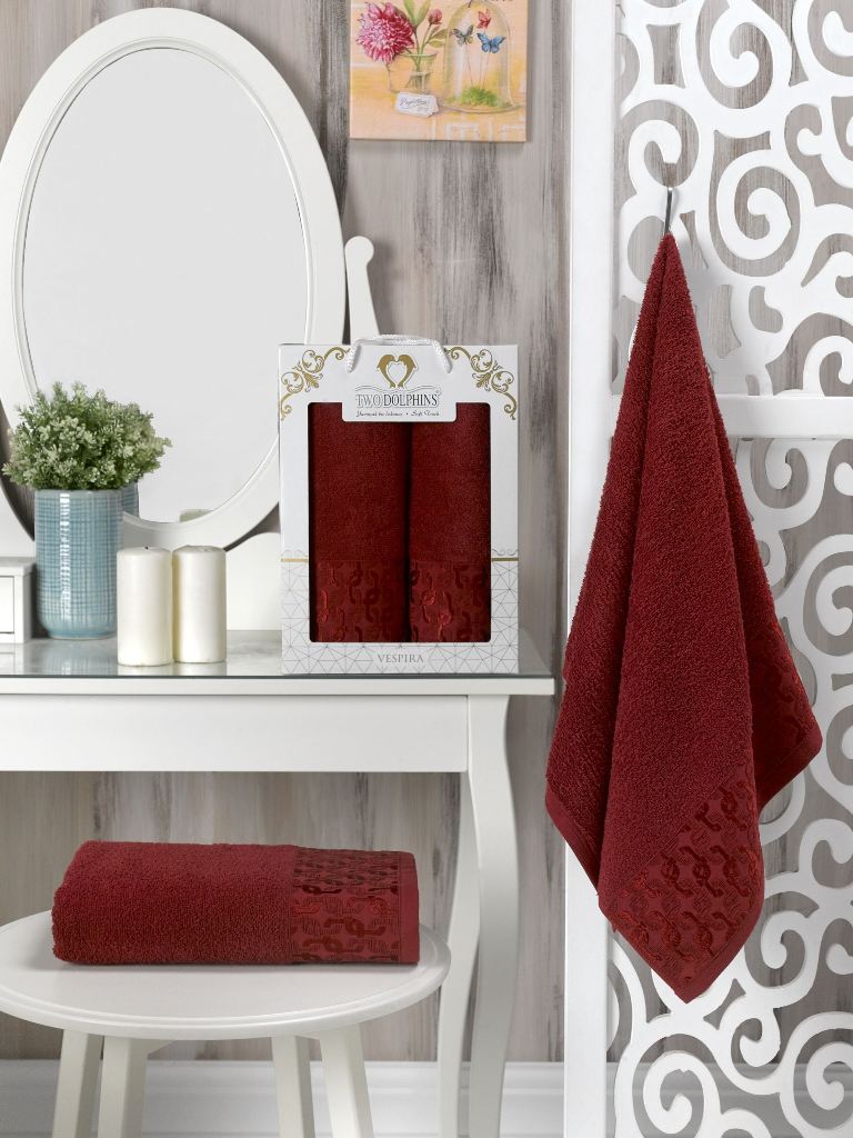 10324-Бордовый VESPIRA 50х90+70х140 в коробке Набор полотенец TWO DOLPHINS