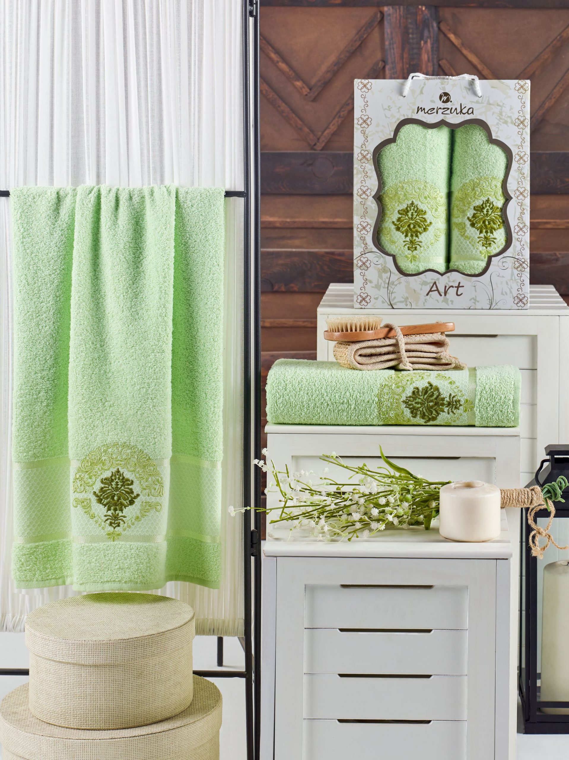 10673 Фисташковый ART махра (50х90+70х140 ) в коробке Набор полотенец MERZUKA