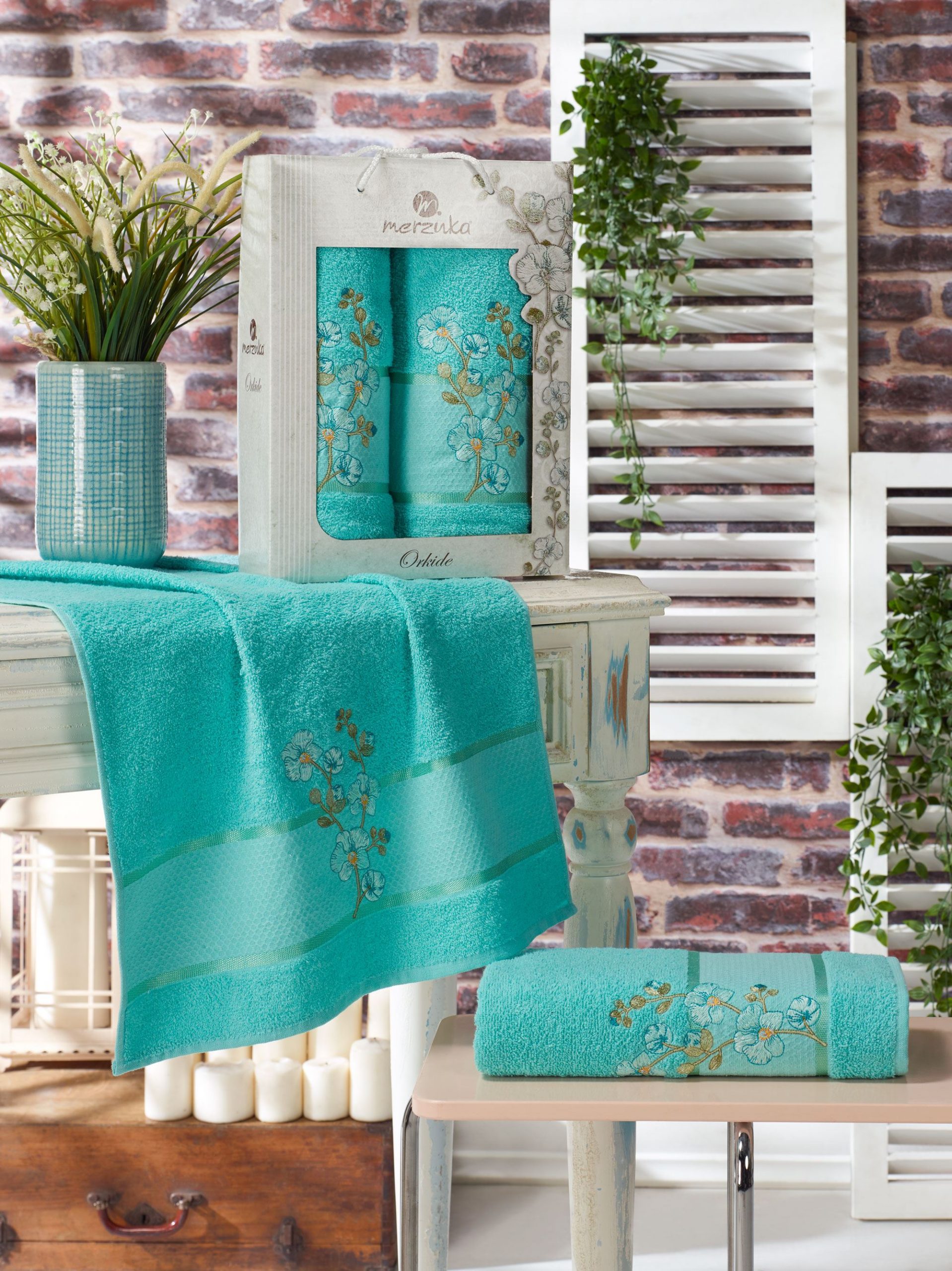 11038 Бирюзовый ORKIDE (50х90+70х140 ) в коробке Набор полотенец MERZUKA
