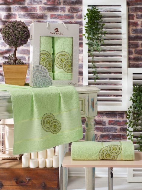 11040 Фисташковый RINGS махра (50х90+70х140 ) в коробке Набор полотенец MERZUKA