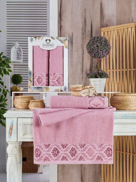 11217-Брусничный ANITA махра (50х90+70х140 ) в коробке Набор полотенец TWO DOLPHINS