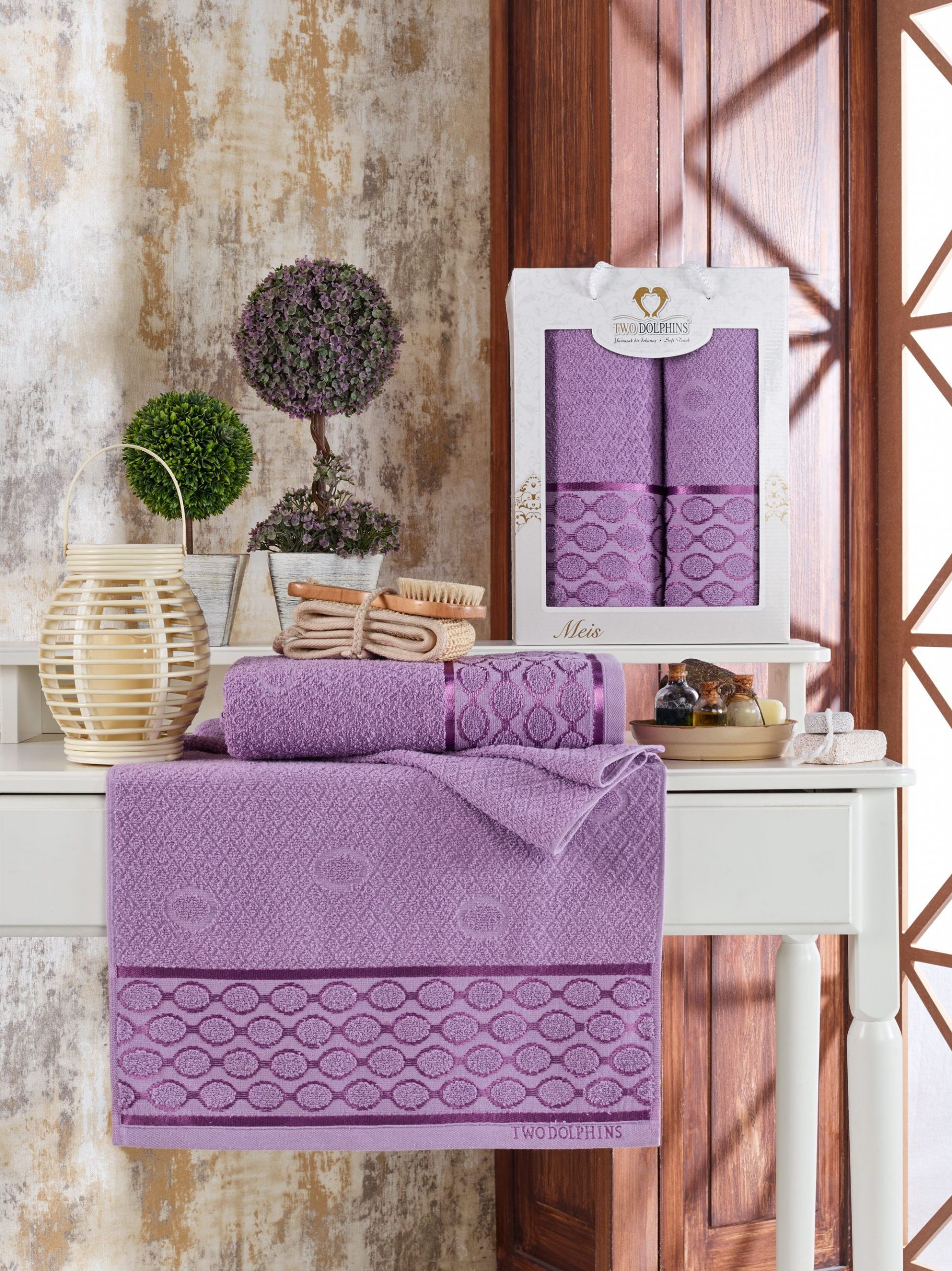11230 Лиловый MEIS махра (50х90+70х140 ) в коробке Набор полотенец TWO DOLPHINS