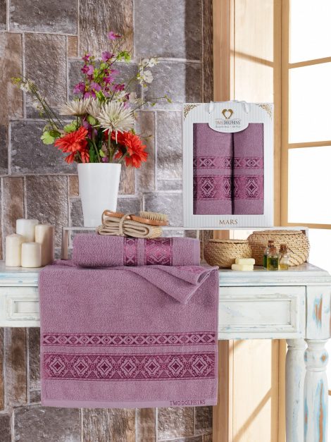 11234 Брусничный MARS махра (50х90+70х140 ) в коробке Набор полотенец TWO DOLPHINS