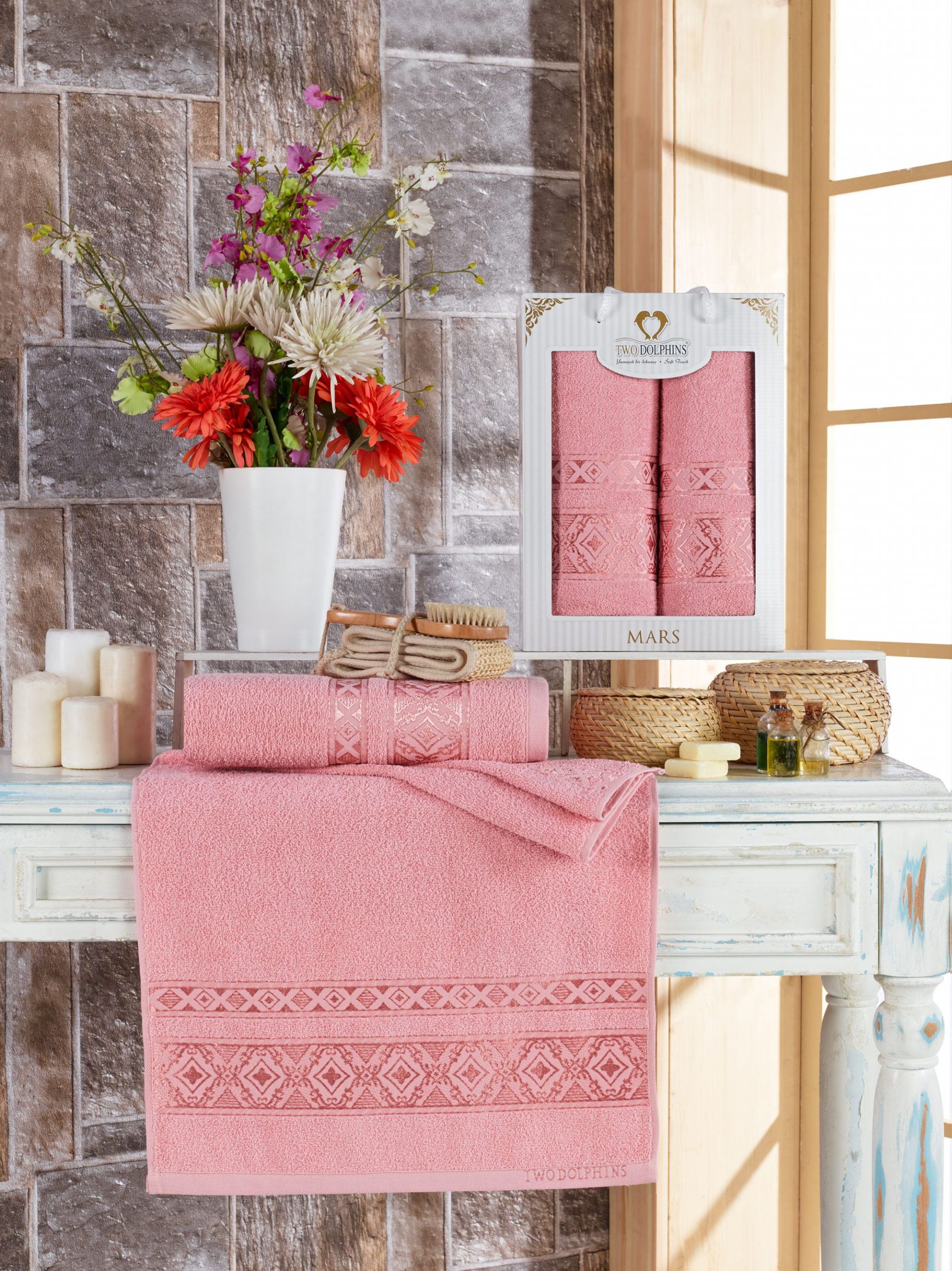 11234 Розовый MARS махра (50х90+70х140 ) в коробке Набор полотенец TWO DOLPHINS