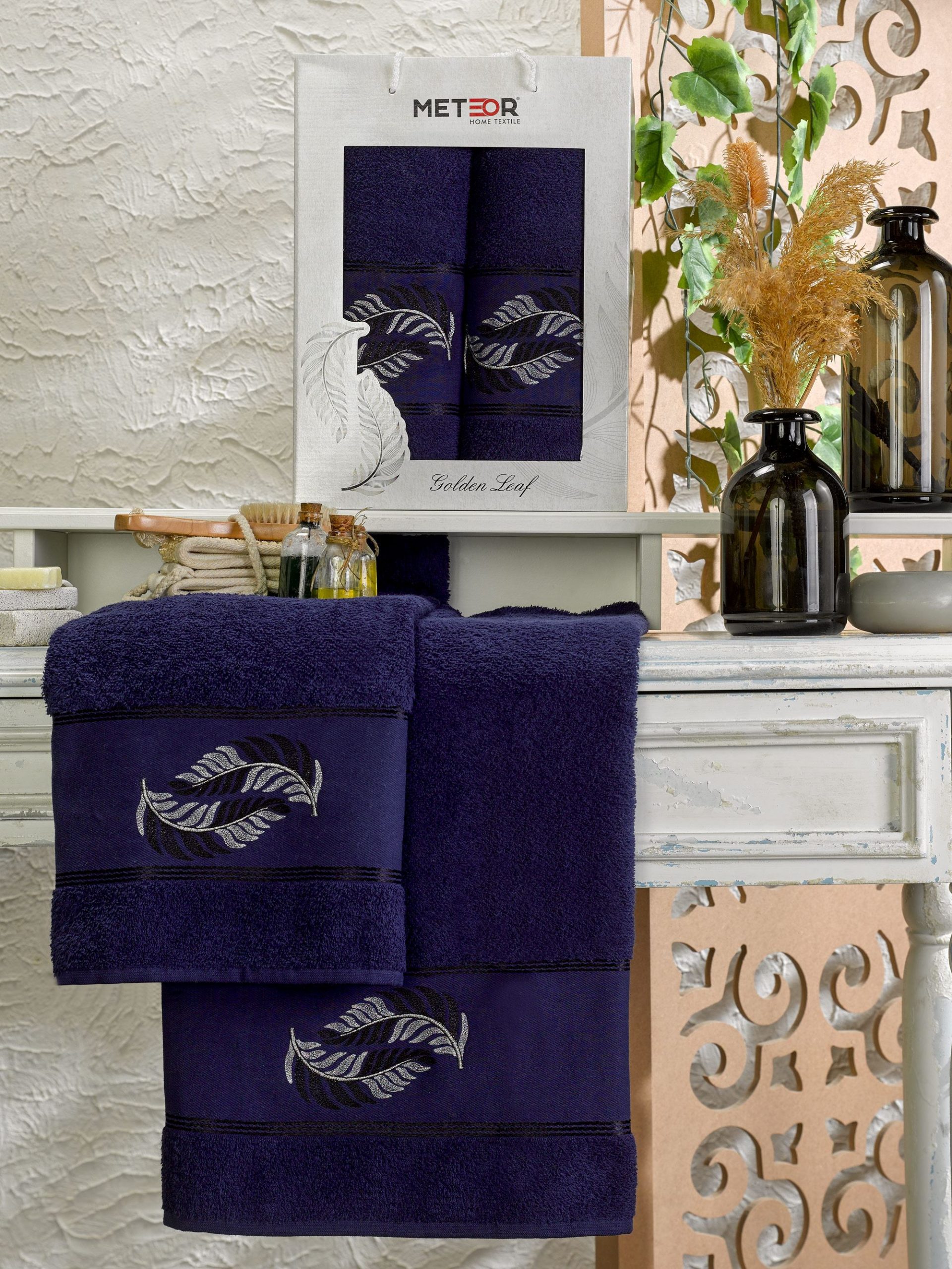 11244 Синий GOLDEN LEAF махра (50х90+70х140 ) в коробке набор полотенец METEOR