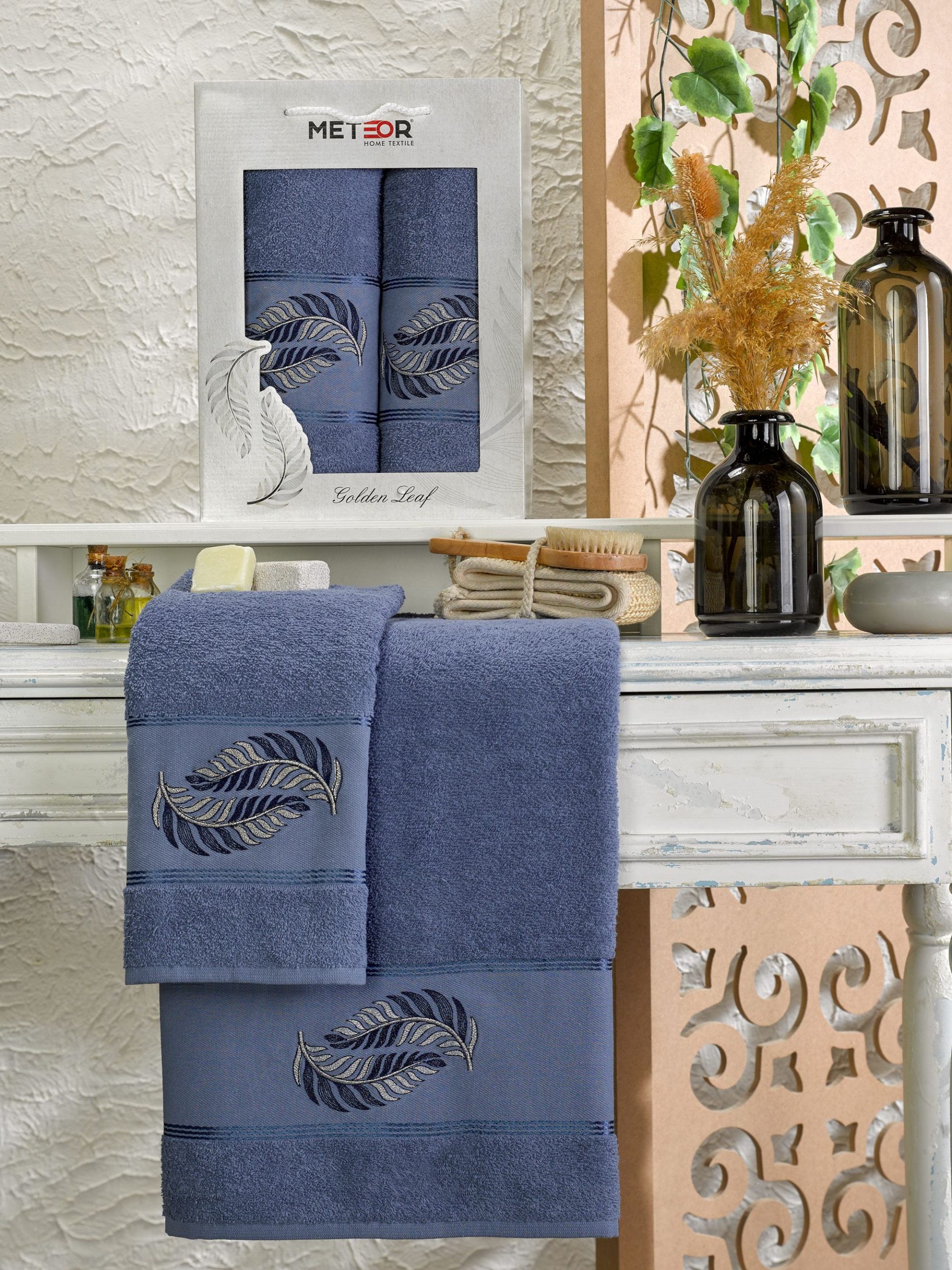11244 Тёмно-голубой GOLDEN LEAF махра (50х90+70х140 ) в коробке набор полотенец METEOR