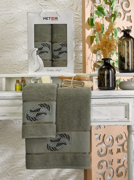 11244 Хаки GOLDEN LEAF махра (50х90+70х140 ) в коробке набор полотенец METEOR