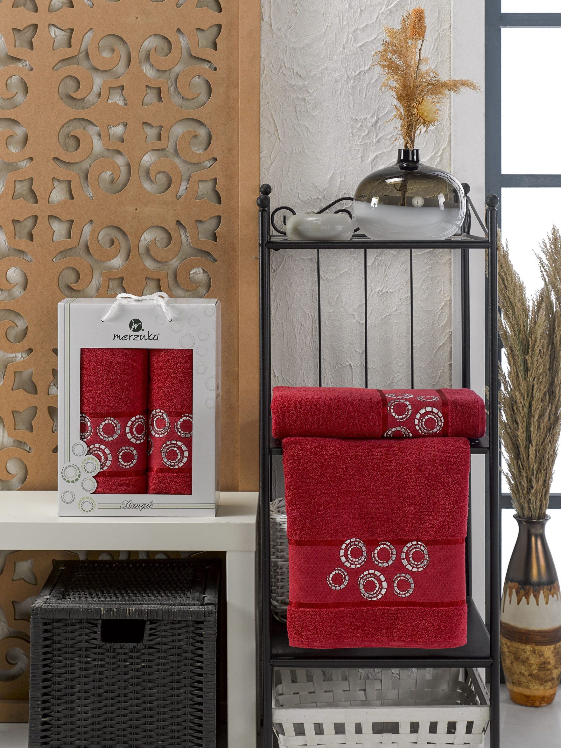 11284 Бордовый BANGLE (50х90+70х140 ) в коробке Набор полотенец MERZUKA