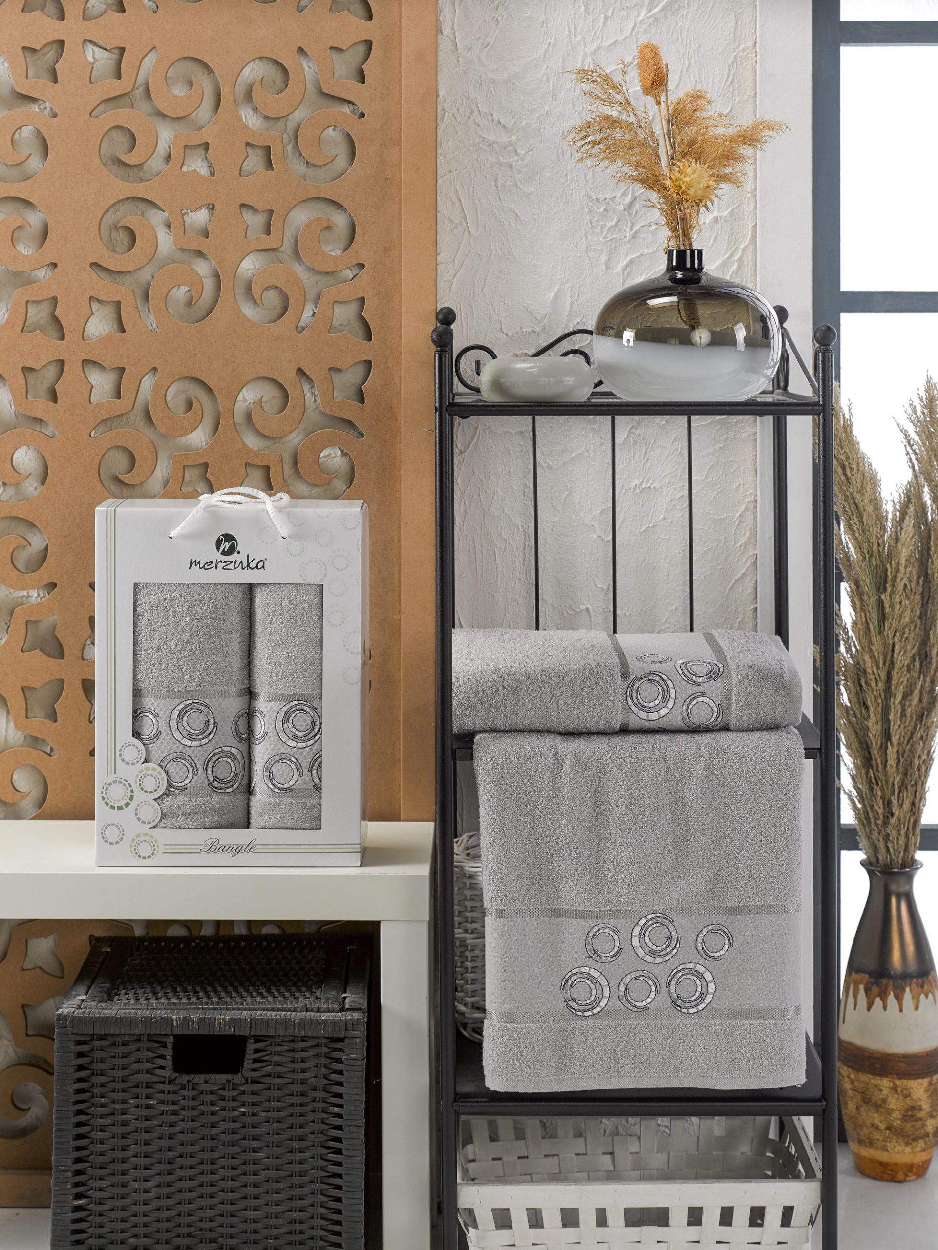 11284 Серый BANGLE (50х90+70х140 ) в коробке Набор полотенец MERZUKA