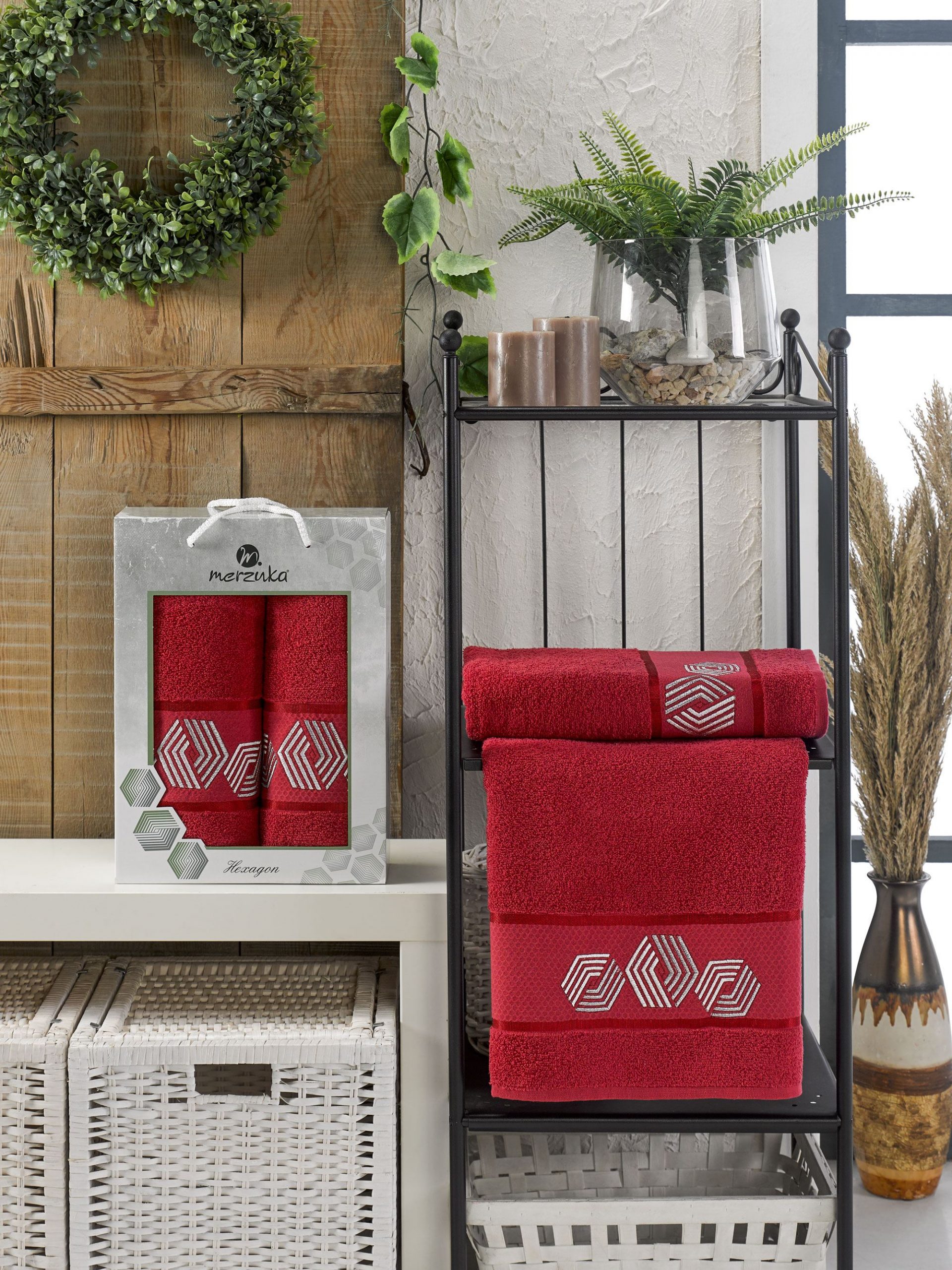 11286 Бордовый HEXAGON махра (50х90+70х140 ) в коробке Набор полотенец MERZUKA