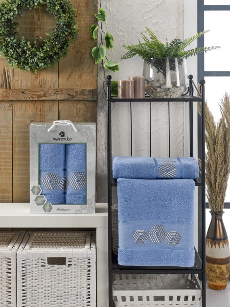 11286 Голубой HEXAGON махра (50х90+70х140 ) в коробке Набор полотенец MERZUKA