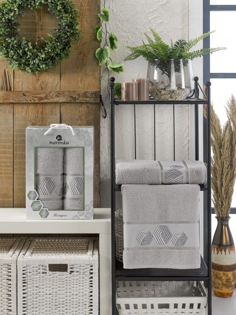 11286 Серый HEXAGON махра (50х90+70х140 ) в коробке Набор полотенец MERZUKA