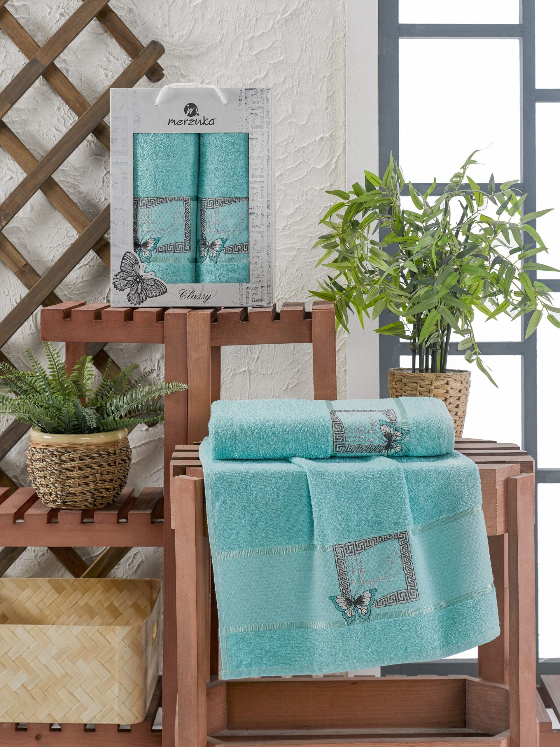 11290 Бирюзовый CLASSY (50х90+70х140 ) в коробке Набор полотенец MERZUKA