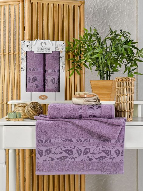 11610 Лиловый SOKE махра (50х90+70х140 ) Набор полотенец в коробке TWO DOLPHINS