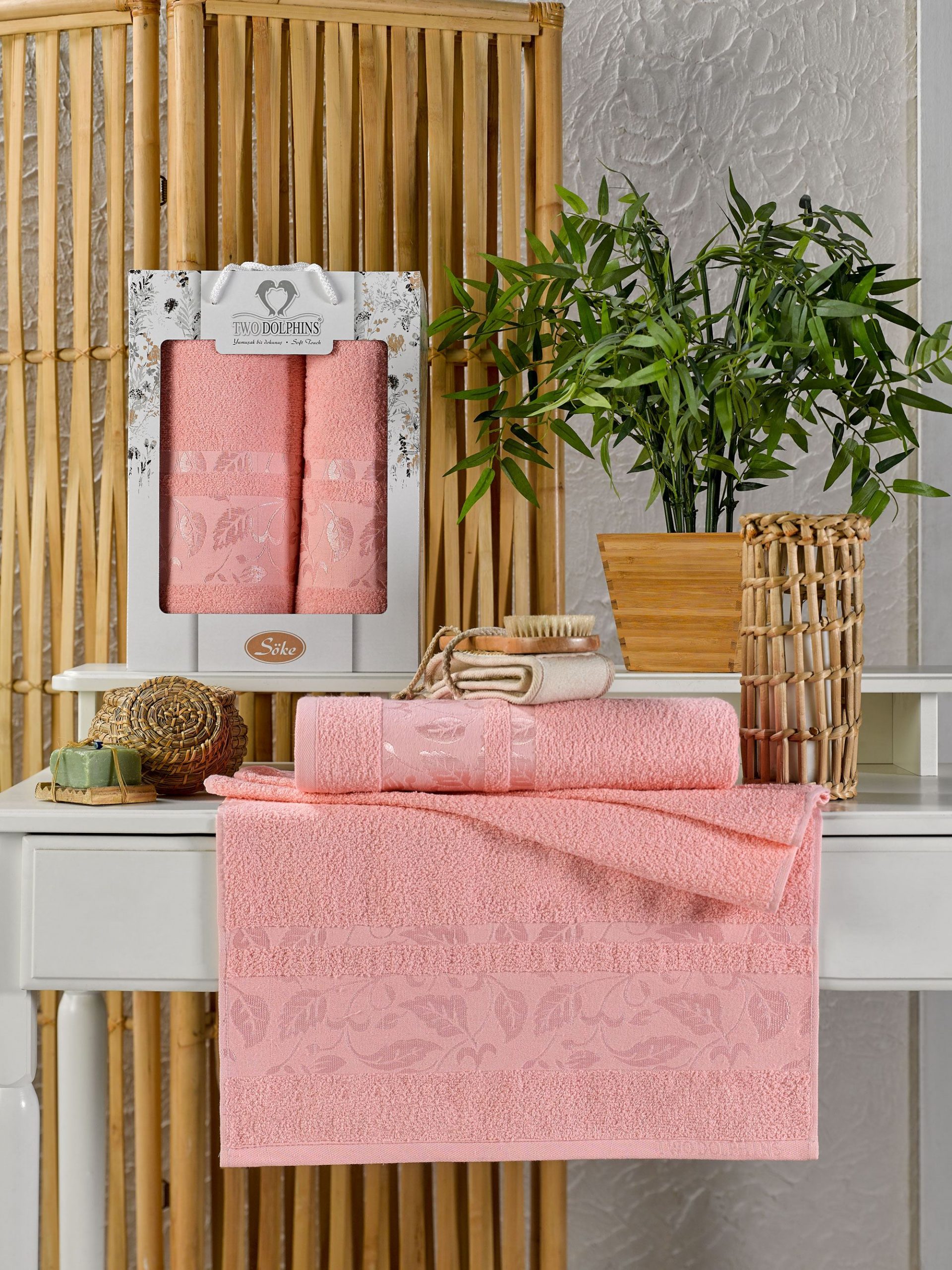 11610 Розовый SOKE махра (50х90+70х140 ) Набор полотенец в коробке TWO DOLPHINS