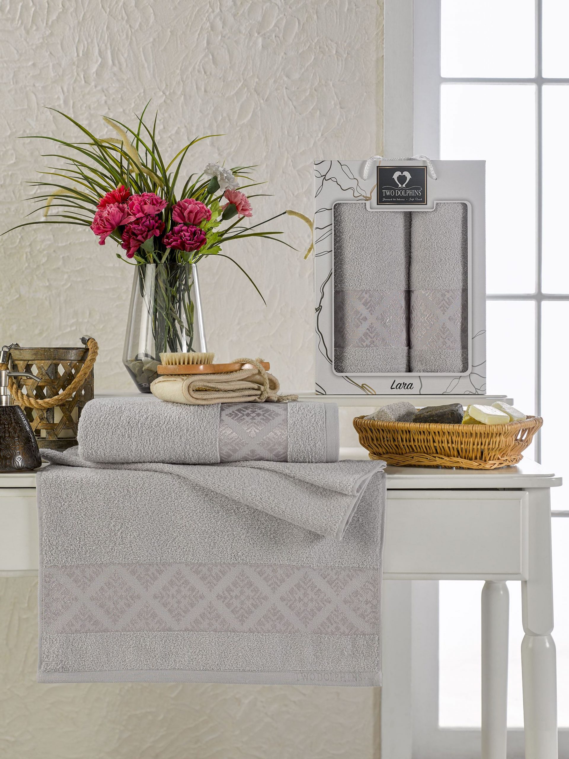 11612 Серый LARA махра (50х90+70х140 ) Набор полотенец в коробке TWO DOLPHINS