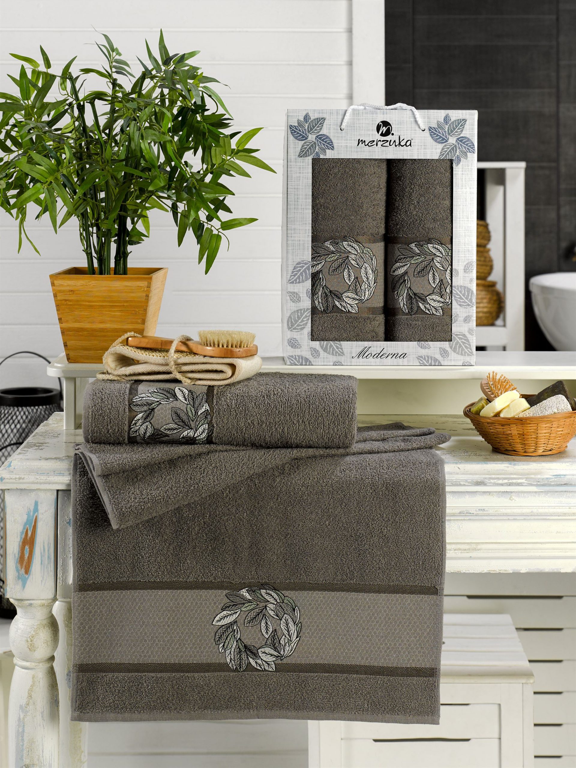 11625 Тёмно-сервый MODERNA махра (50х90+70х140 ) в коробке Набор полотенец MERZUKA