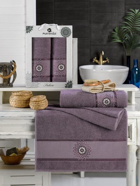11627 Сиреневый SAHRA махра (50х90+70х140 ) в коробке Набор полотенец MERZUKA