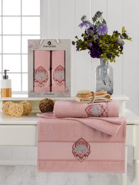 11637 Розовый PADMA махра (50х90+70х140 ) в коробке Набор полотенец MERZUKA