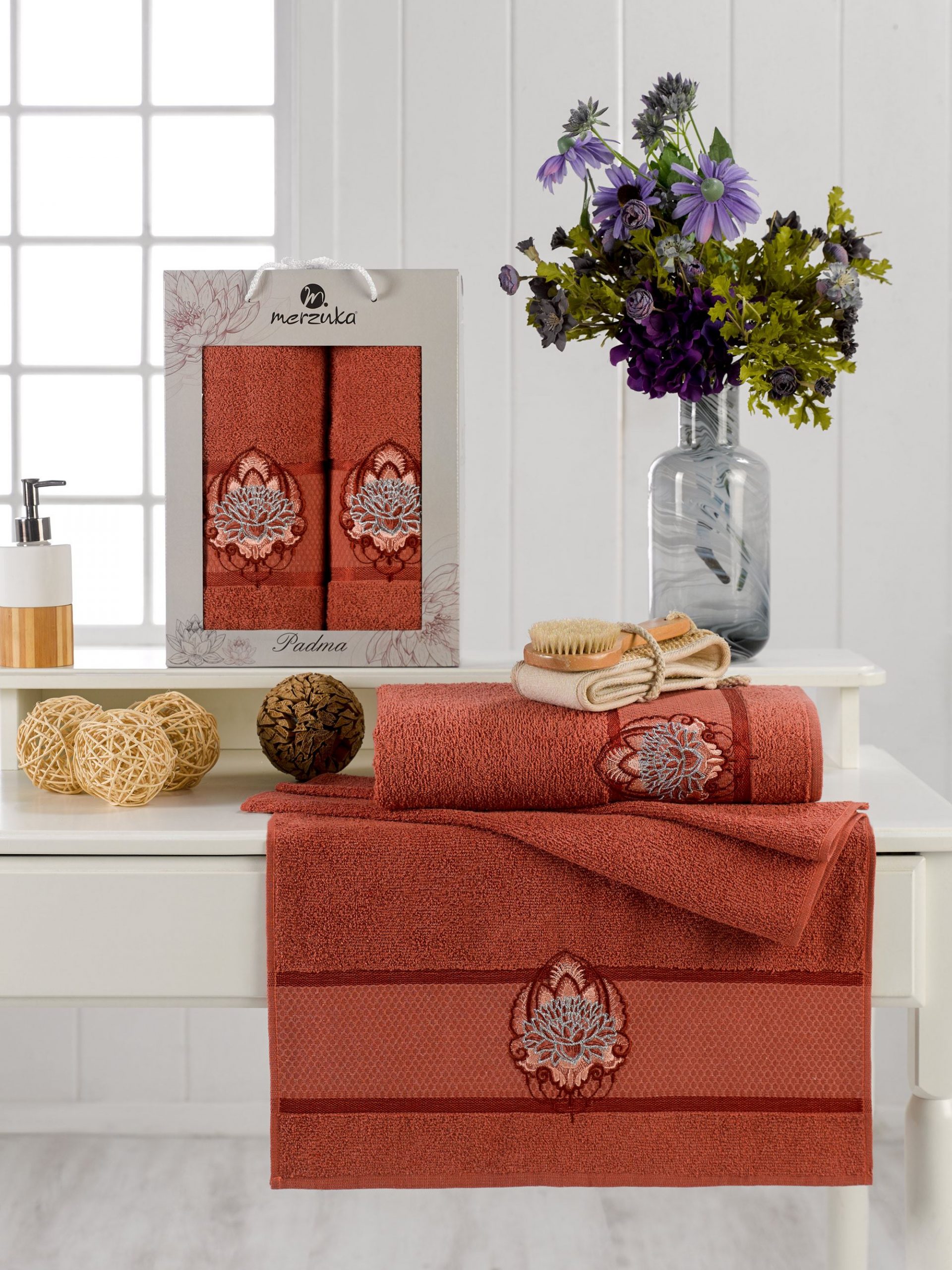 11637 Терракотовый PADMA махра (50х90+70х140 ) в коробке Набор полотенец MERZUKA