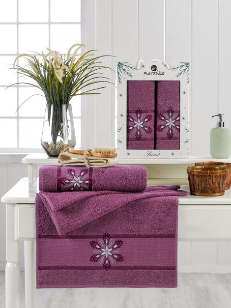 11639 Баклажан SIRIUS махра (50х90+70х140 ) в коробке Набор полотенец MERZUKA