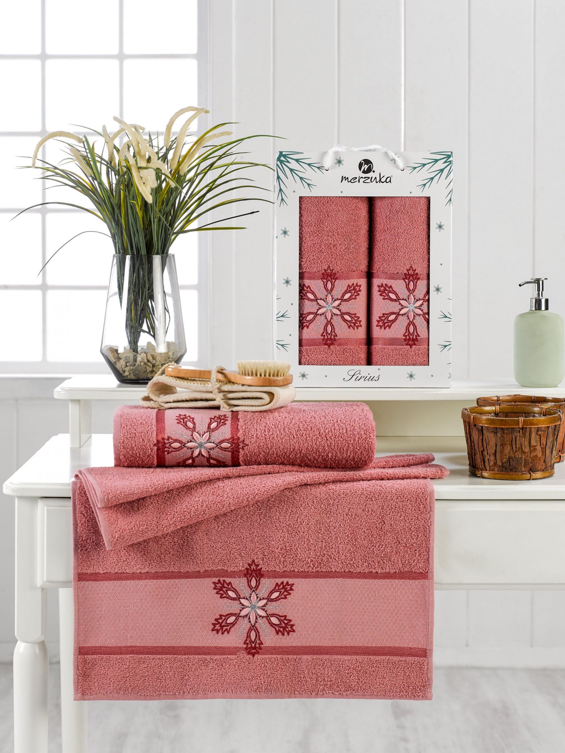 11639 Брусничный SIRIUS махра (50х90+70х140 ) в коробке Набор полотенец MERZUKA