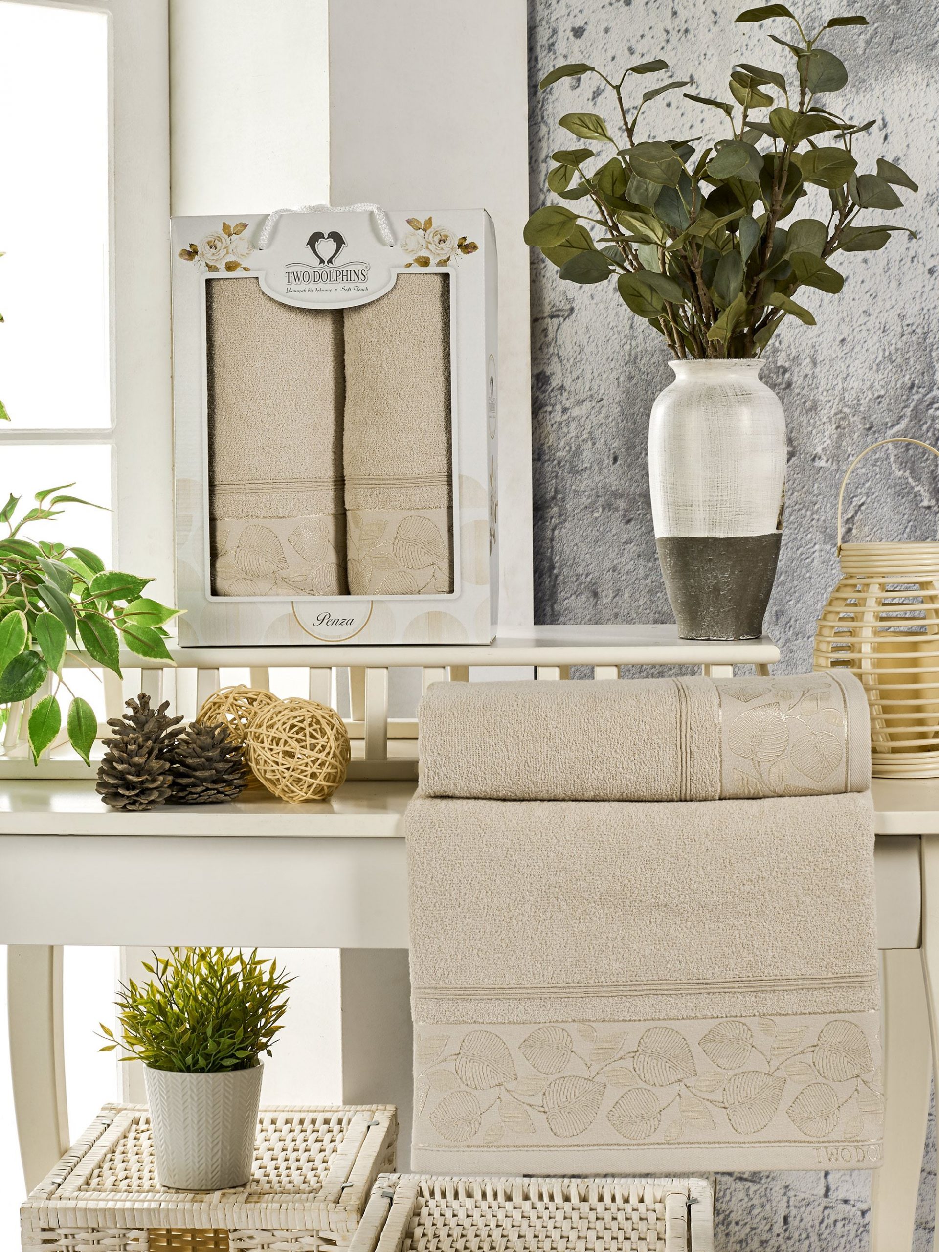 11800 Бежевый PENZA махра (50х90+70х140 ) Набор полотенец в коробке TWO DOLPHINS