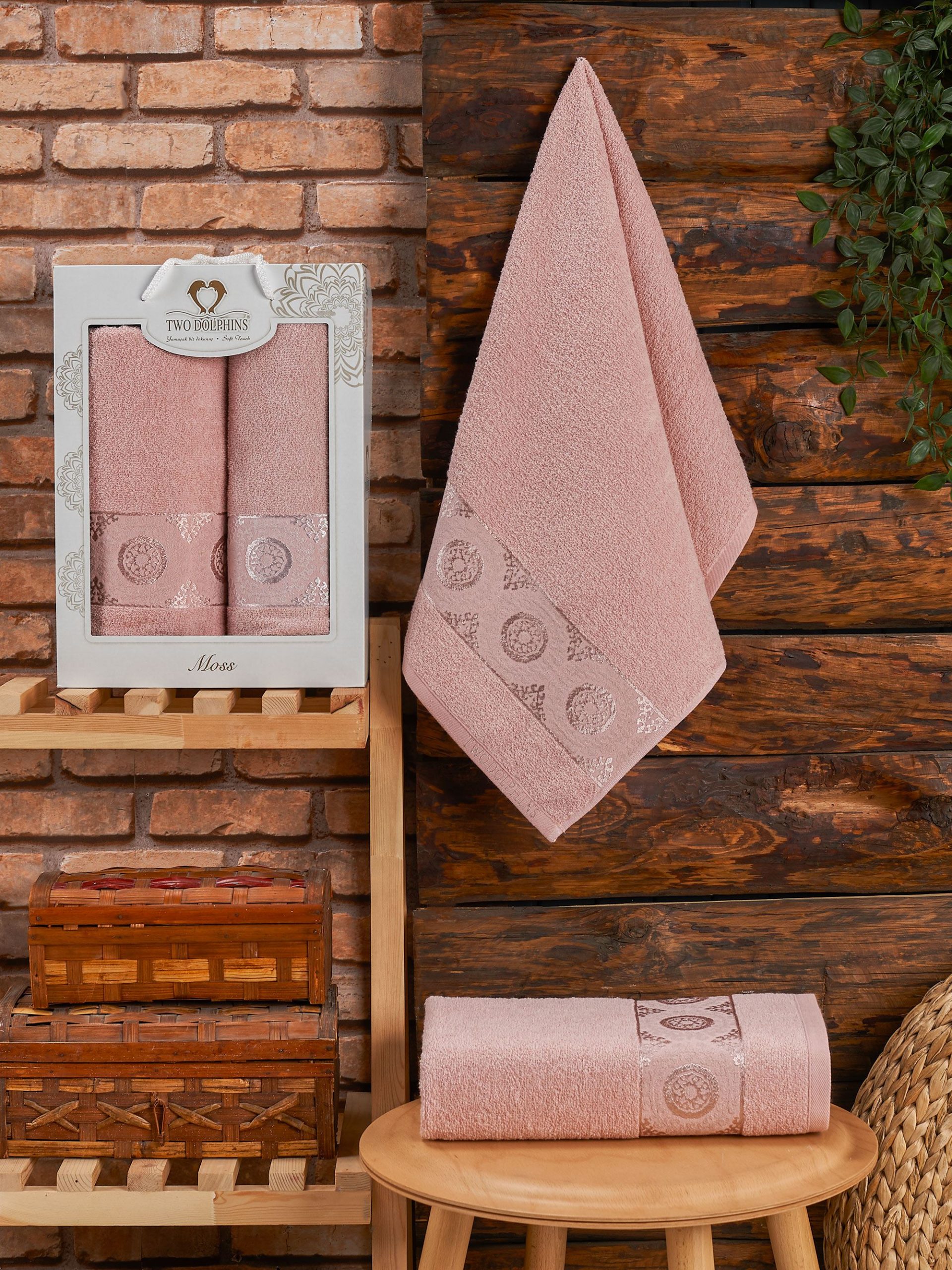 11808 Пудра MOSS махра (50х90+70х140 ) Набор полотенец в коробке TWO DOLPHINS
