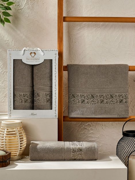 Заказать звонок11818 Серый MARI махра (50х90+70х140 ) Набор полотенец в коробке TWO DOLPHINS