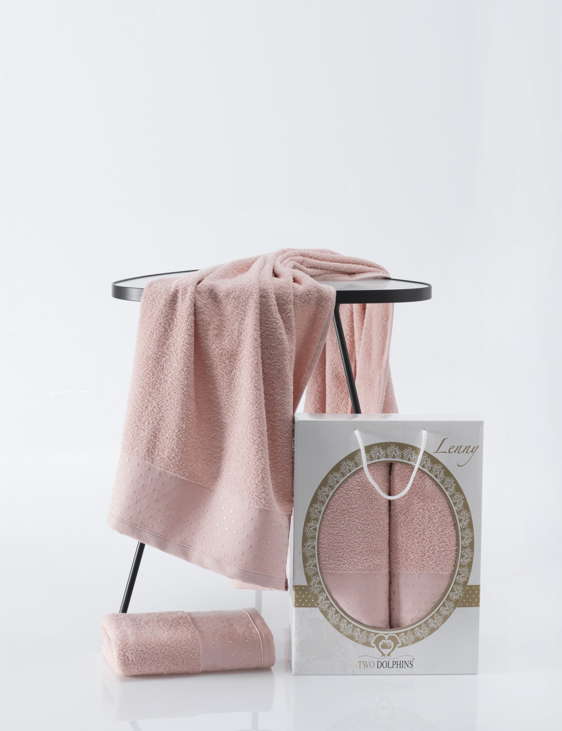 9481 Пудра LENNY махра (50х90+70х140 ) Набор полотенец в коробке TWO DOLPHINS