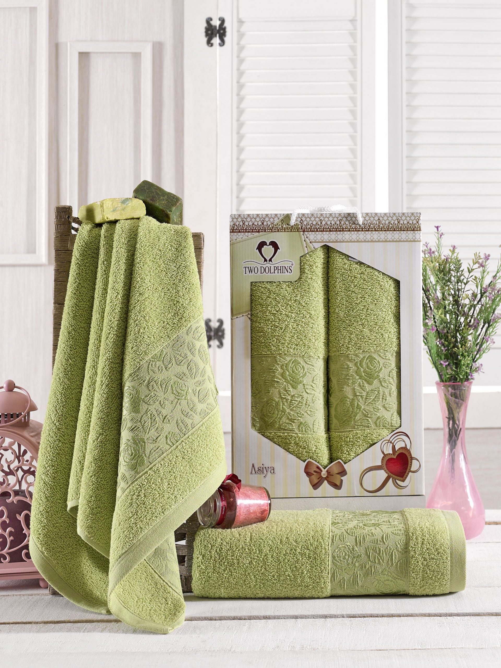 9834 Фисташковый ASIYA махра (50х90+70х140 ) Набор полотенец в коробке TWO DOLPHINS