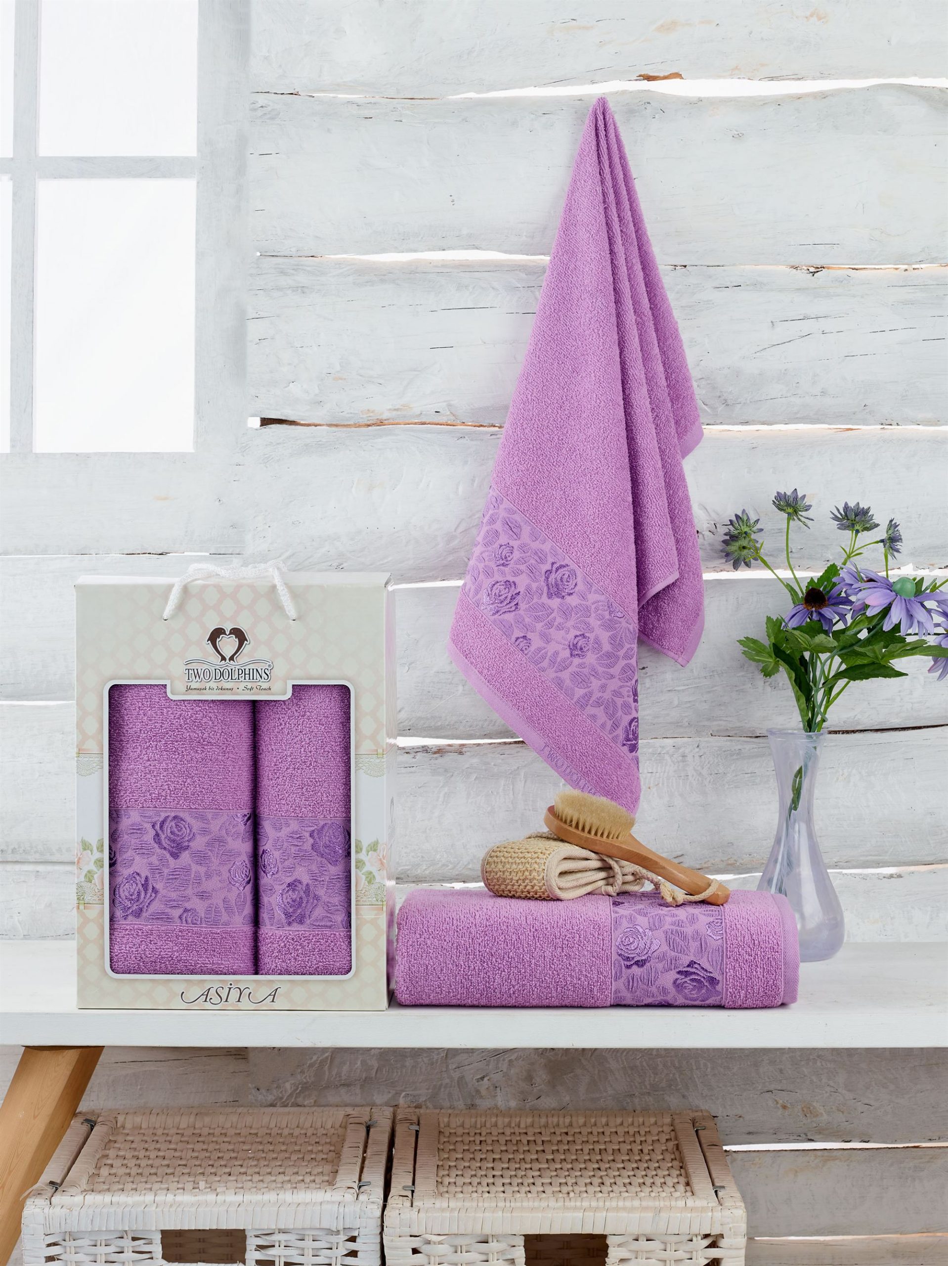 9834 Лиловый ASIYA махра (50х90+70х140 ) Набор полотенец в коробке TWO DOLPHINS