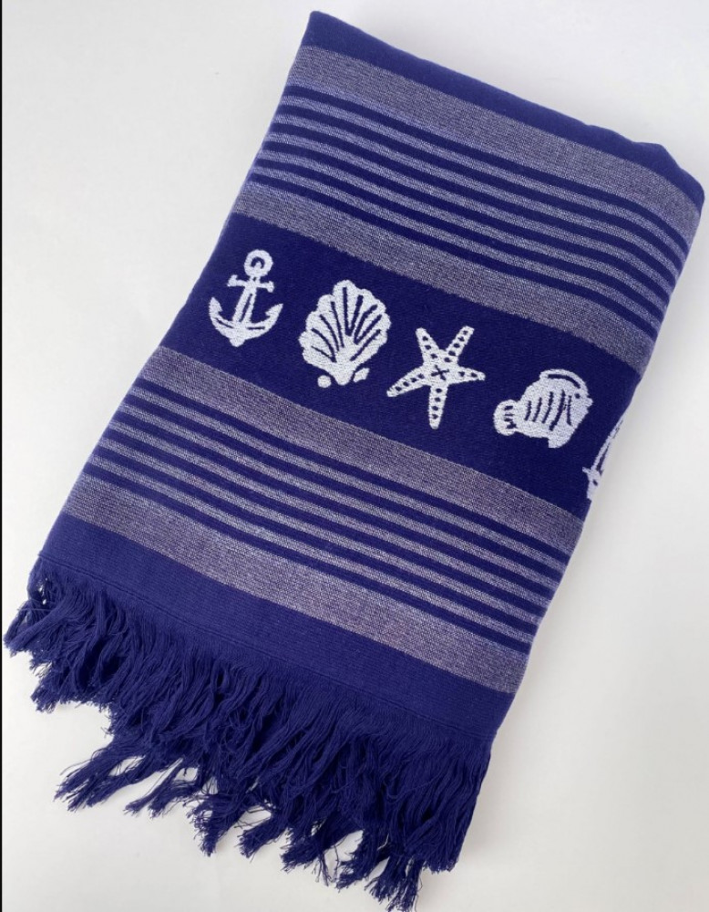 Главная  / Полотенца / Пештемаль Белые якоря темно-синий 70×140