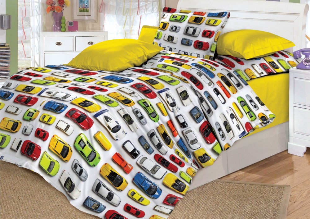 Постельное белье детское Поплин Машинки Полутороспальное